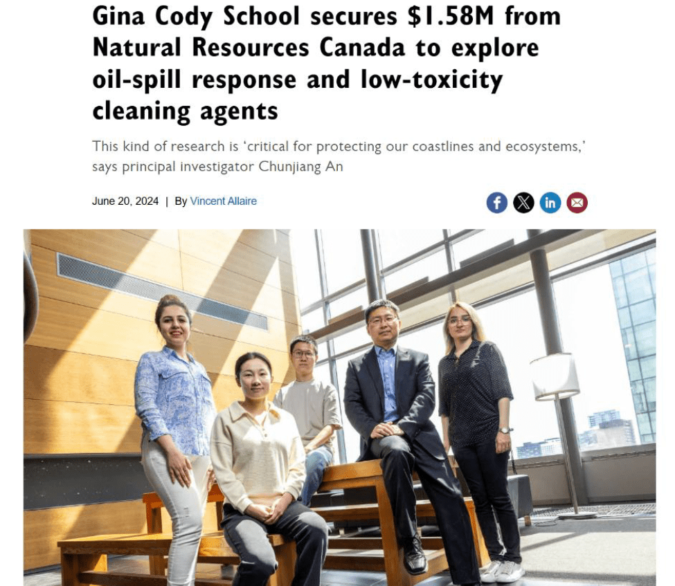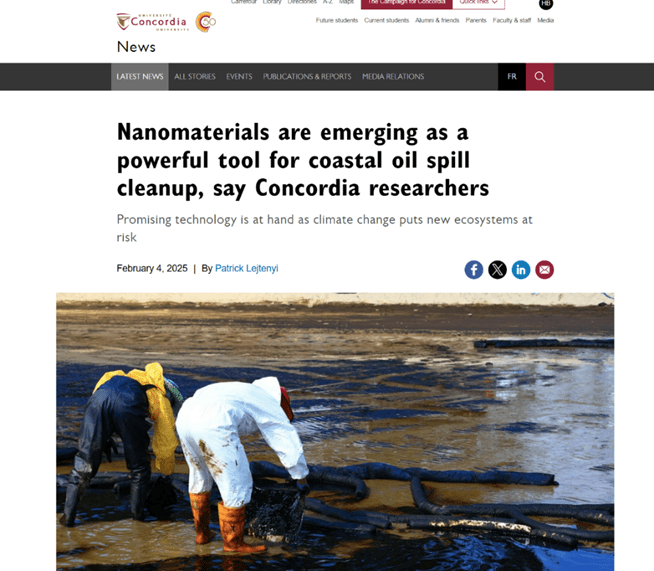▪ Featured by Concordia University regarding research on nanomaterials are emerging as a powerful tool for coastal oil spill cleanup