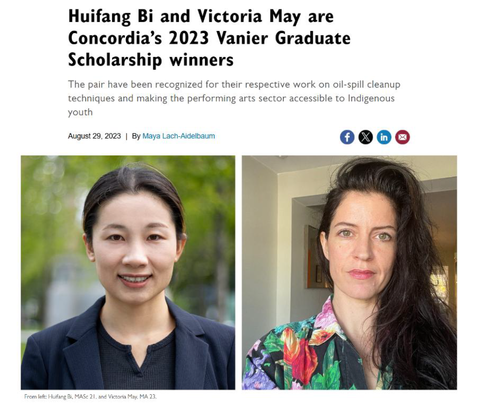 ▪ Featured by Concordia University as a recipient of the prestigious 2023 Vanier Graduate Scholarship regarding research on oil-spill cleanup techniques