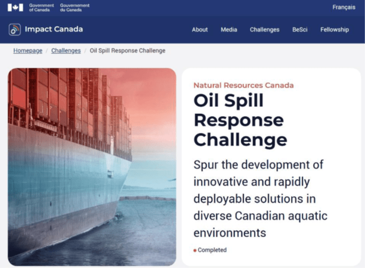 (https://impact.canada.ca/en/challenges/oil-spill-response#ps3) 09/2022